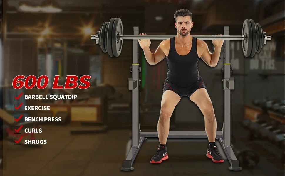 - With a 690 lb capacity and a robust 50x50mm square steel frame, you enjoy rock‑solid stability and a dedicated barbell shelf for safe, consistent lifts.