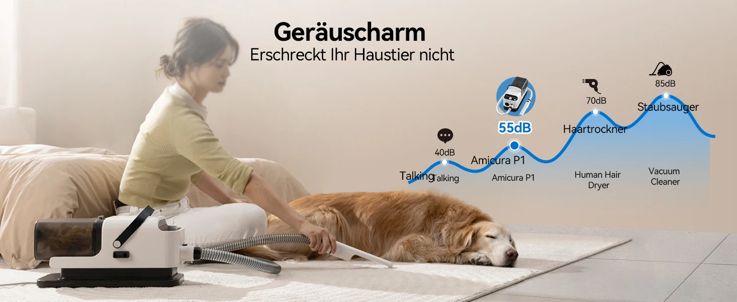 Amicura P1 Vacuum Cleaner & Hair Dryer 15kpa, Pet Grooming Set Adjustable Speed and Temperature, 5 Proven Care Tools Dog Clipper