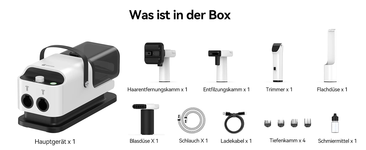 Simultaneous functions: blow-drying, cutting and sucking-ideal for professional groomers and demanding pet care