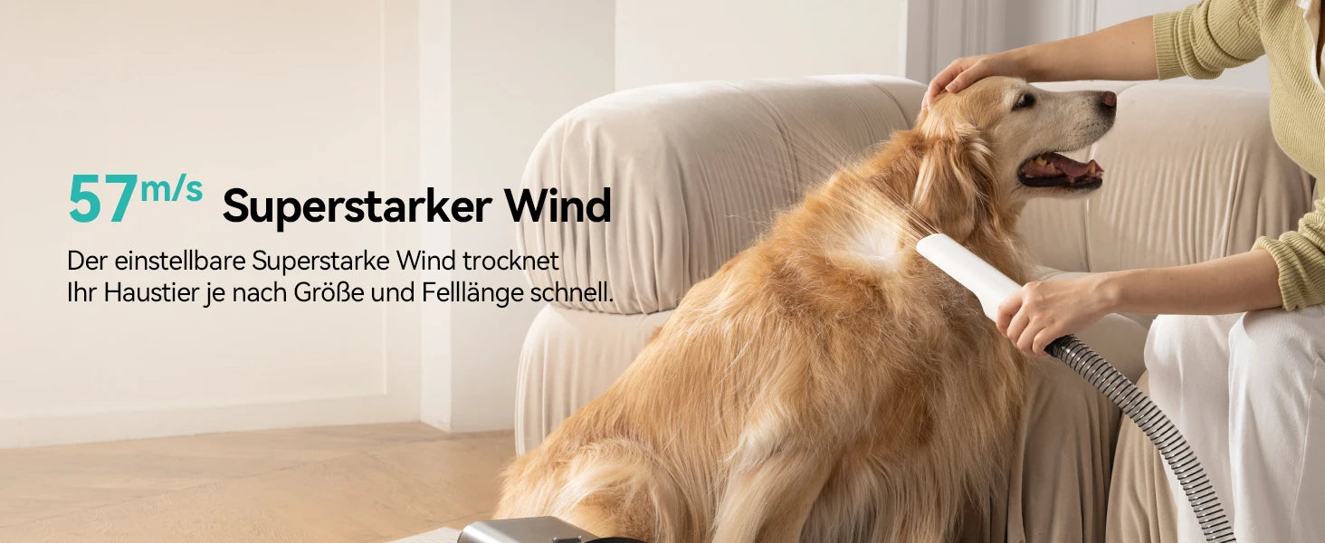 The adjustable super strong wind dries your pet quickly depending on the size and length of the coat.