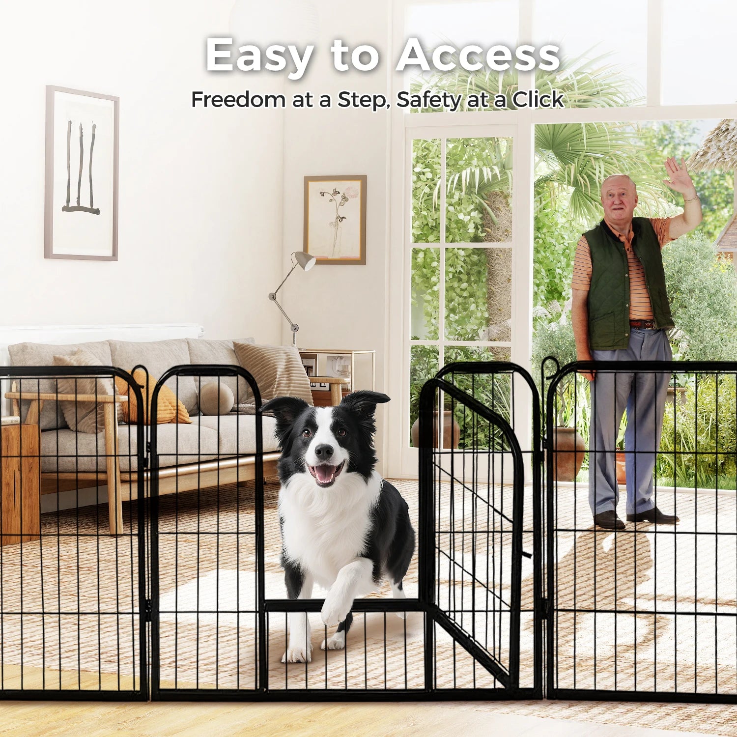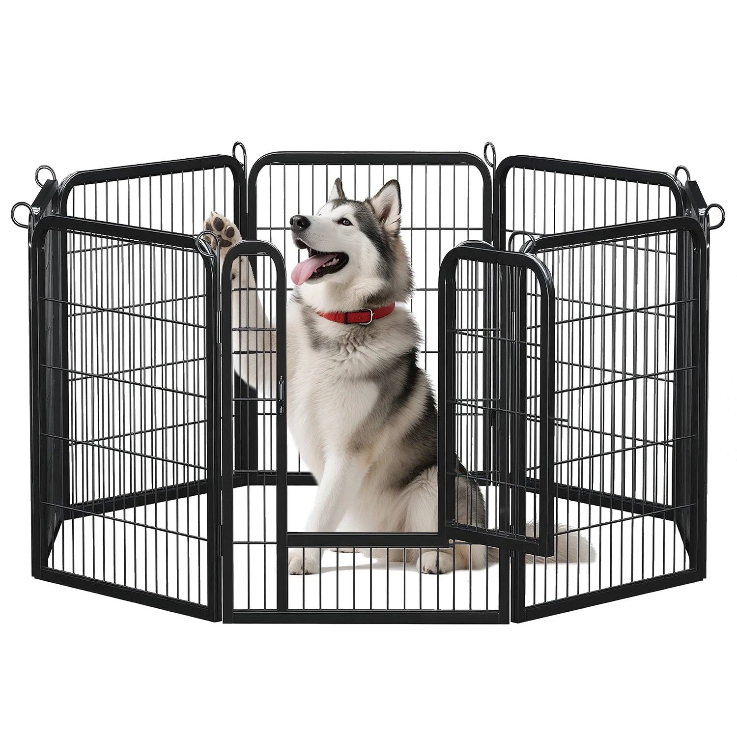 Dog Playpen with Door, Outdoor/Indoor Foldable Metal Pet Fence, Heavy Duty Puppy Exercise Pen for Yard, RV Camping, DIY Pet Cage