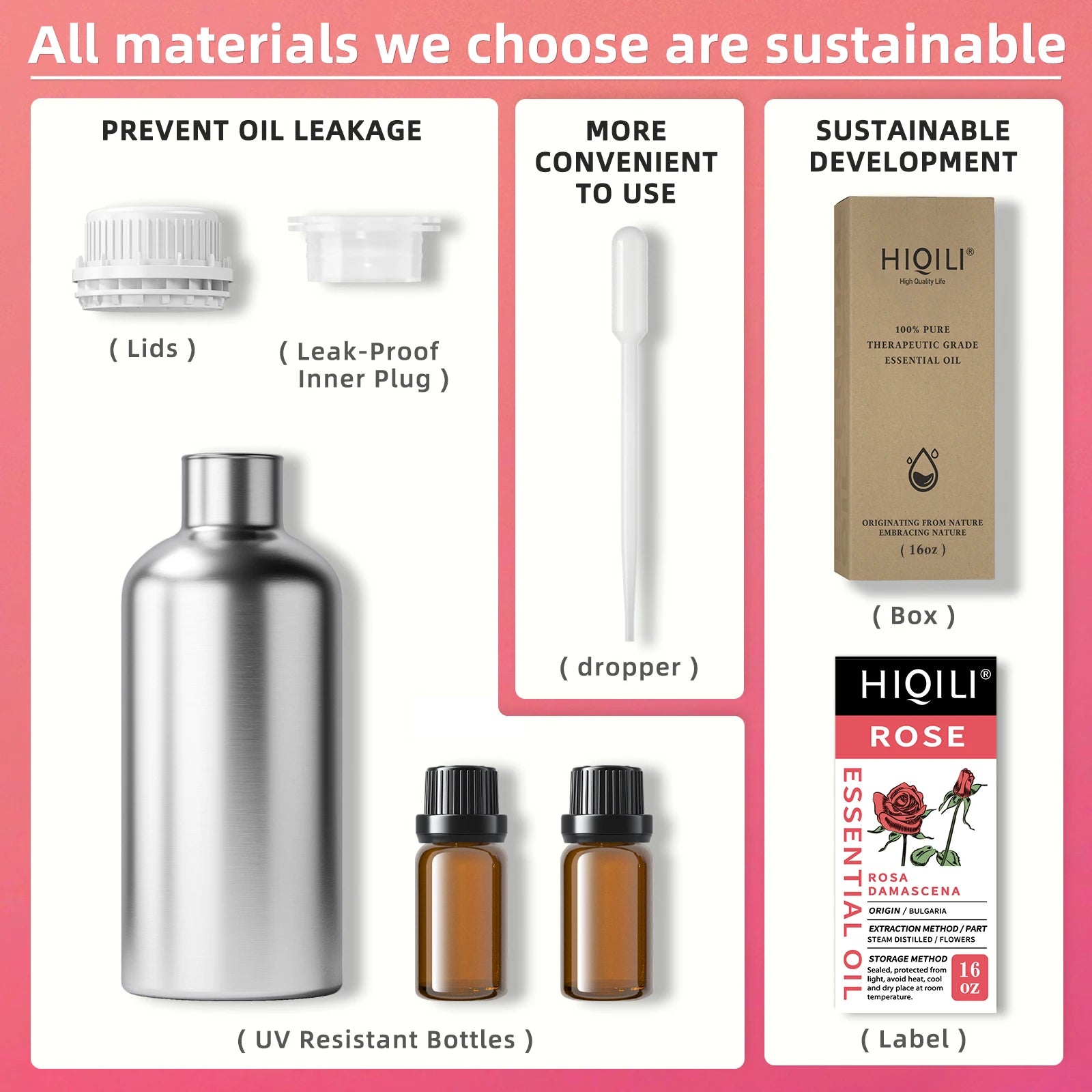 Experience the exotic, rosy aura of Rosa damascena with Hiqili Rose Essential Oil—pure, versatile, and perfect for your diffuser aromatherapy and skincare.