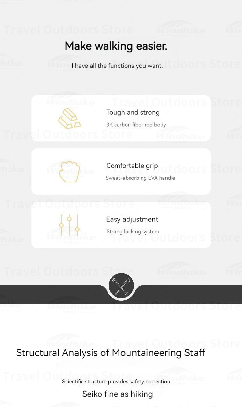Take on rugged trails with Naturehike’s CNK2300DS010 three-section ultralight carbon fiber trekking pole, giving you balanced stability and energy-efficient strides on every ascent.