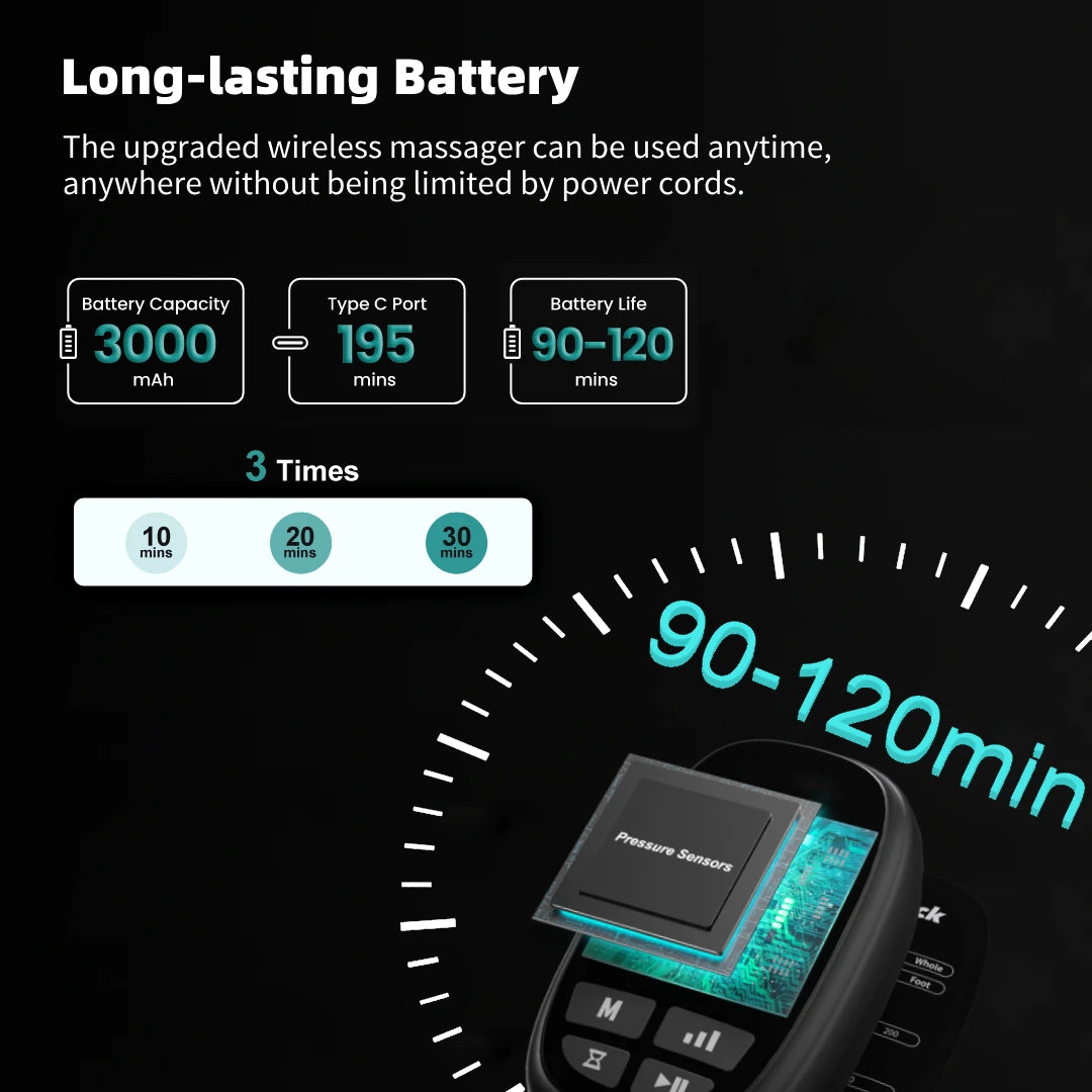 Wireless and Portable: The rechargeable leg massager features a powerful large-capacity battery that provides a battery life of 90-120 minutes, allowing for use without being tethered to a socket. It also comes with a portable storage bag for easy transport, making it ideal for travel, fitness or office use. Enjoy ultimate convenience anywhere!