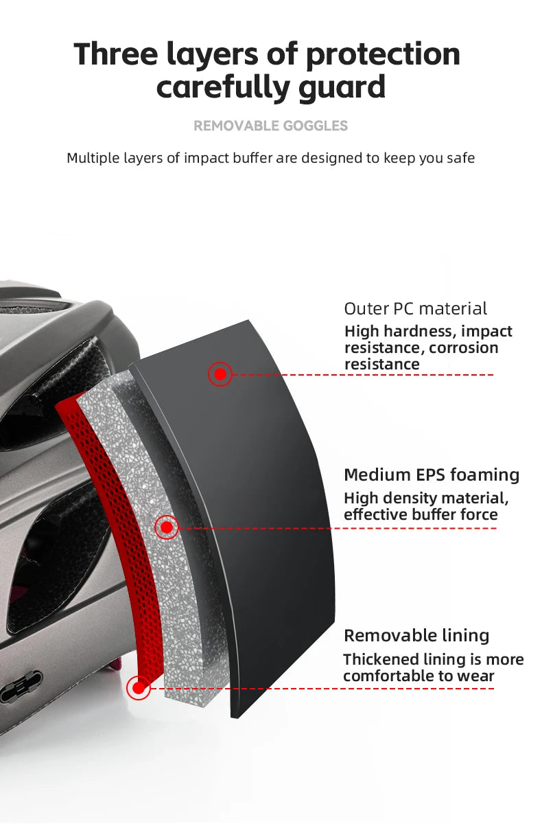 Ride with confidence: the ROCKBROS Integrated Helmet with Goggles blends protection, visibility, and comfort in one streamlined package.