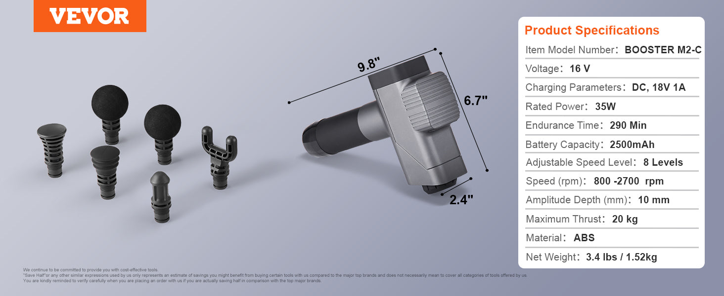 - 6 interchangeable heads let you tailor treatments to specific muscle groups and needs—deep tissue work, surface relaxation, knots, or post‑exercise recovery.