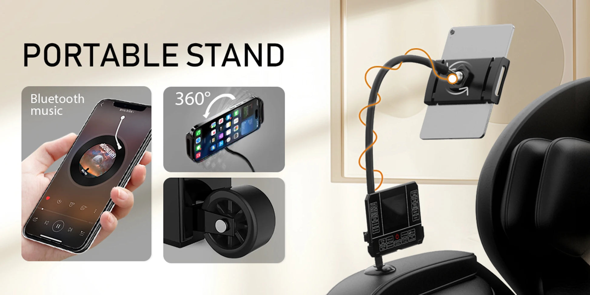 - Smart comfort and accessibility Bluetooth connectivity and a phone holder let you listen to music during sessions; ambient blue lights and easy-move rollers create a calming setup, accommodating up to 180 lb and 6 ft tall users.